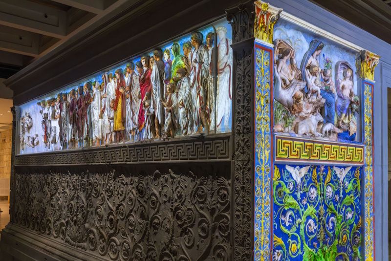 •  il fronte occidentale, con i pannelli di Enea sacrificante ai Penati e del Lupercale;